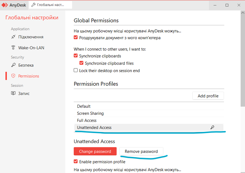 Якщо вас при підвищенні прав до адміністратора AnyDesk запитує пароль, то вам слід звернутись до нас за допомогою на пошту Ця електронна адреса захищена від спам-ботів. Вам потрібно увімкнути JavaScript, щоб побачити її. з приміткою: допомога в налаштуванні безпеки Anydesk.