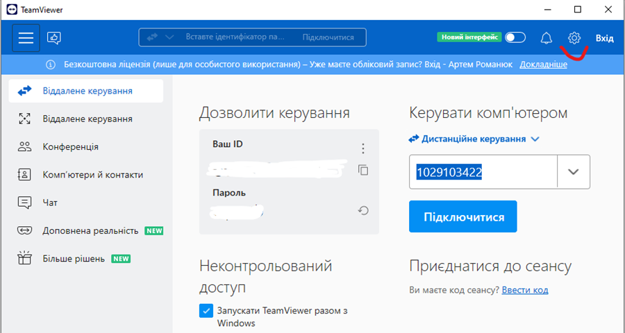 В останній версії TeamViewer налаштування виглядають наступним чином: